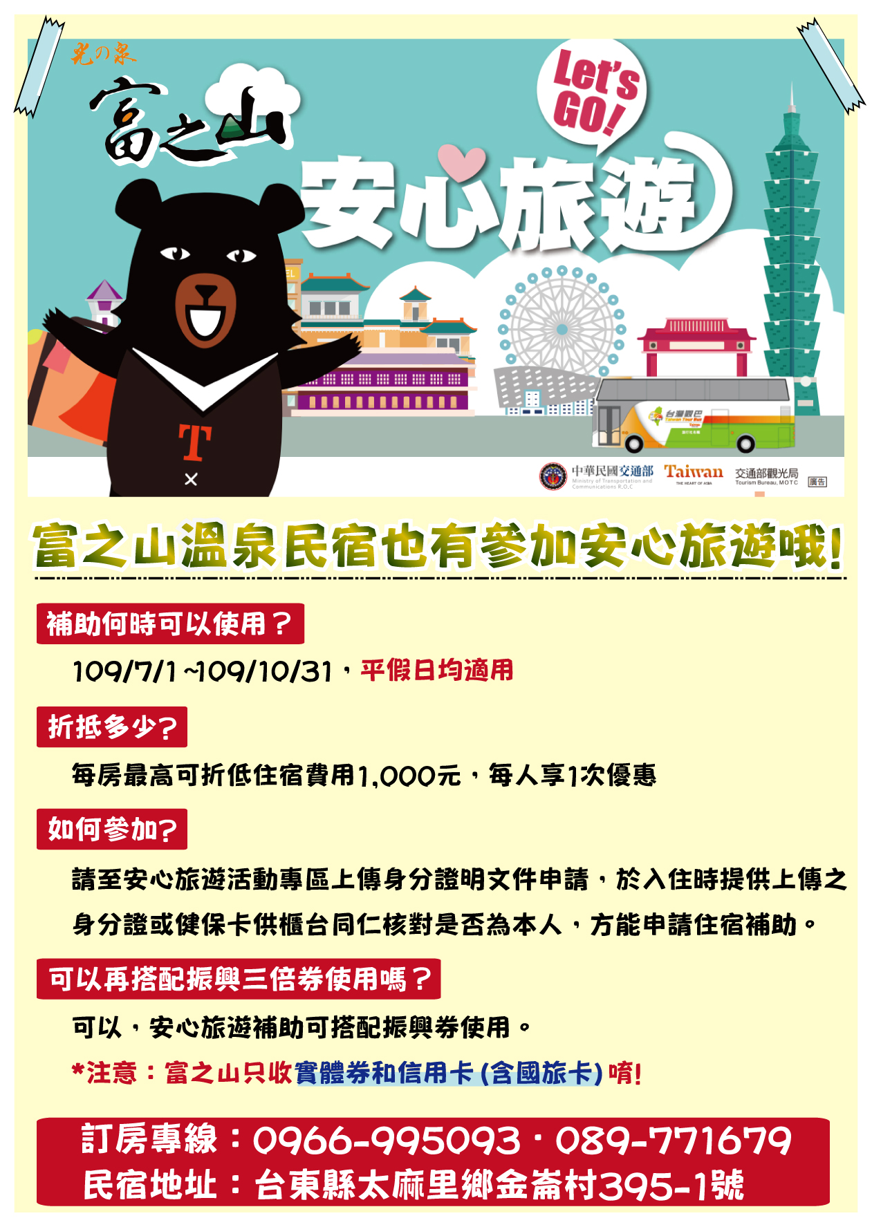 標題:富之山溫泉民宿安心旅遊補助109/7/1-109/10/31